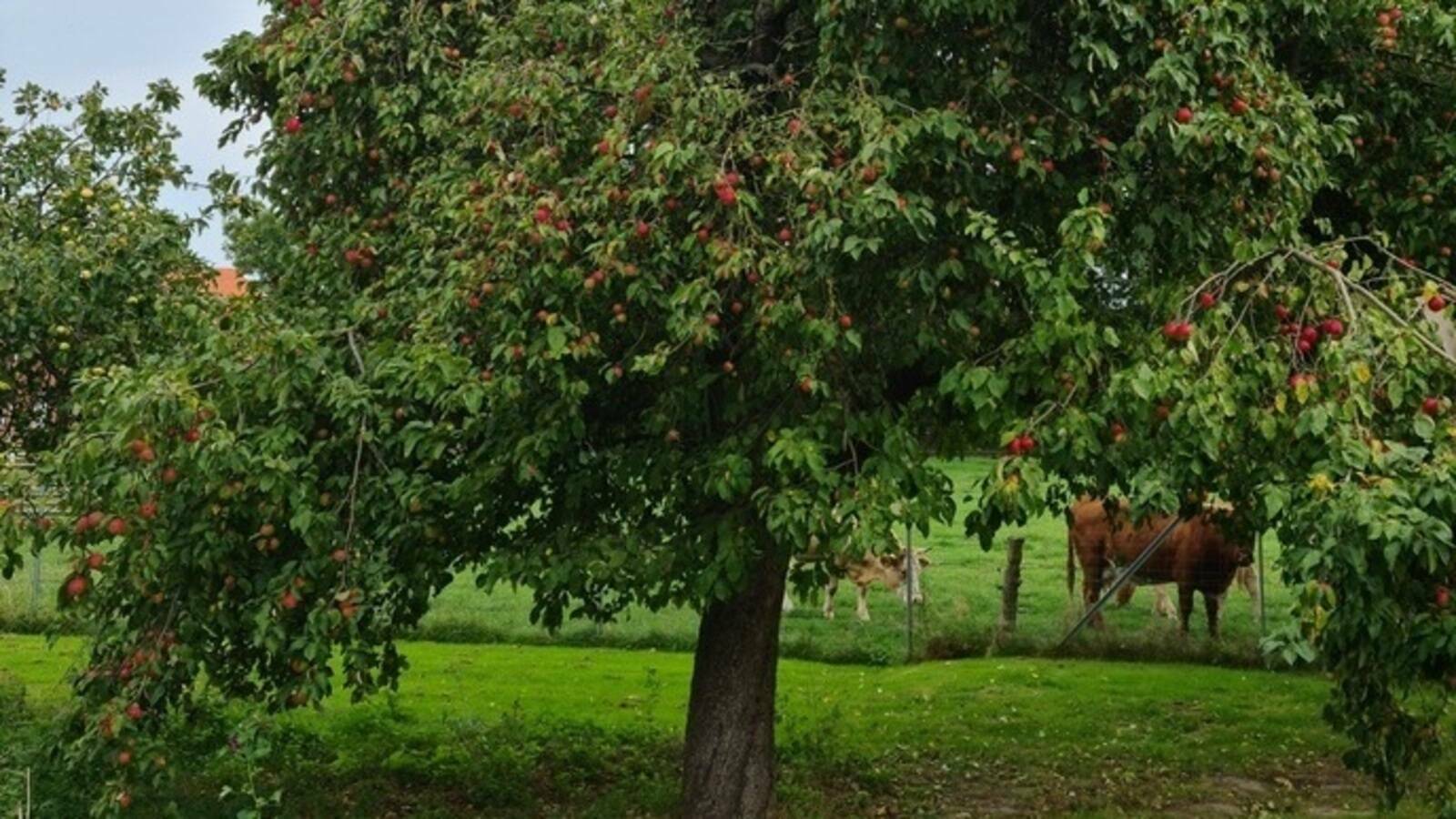 Wir haben eine kleine Streuobstwiese mit 30 Obstbäumen. Da die Ernte immer zu viel für unseren Hausgebrauch ist, verkaufen wir unseren Ernteüberschuss gerne weiter - solange Vorrat reicht.