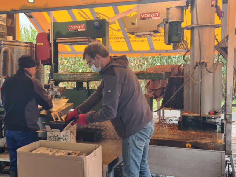 Wir lassen unsere Äpfel, Birnen und Quitten in einer kleinen Mosterei direkt abfüllen. Es ist ausschließlich der Saft aus unserem Garten abgefüllt.